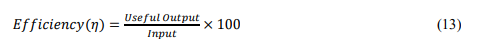 Efficiency: Efficiency refers to how well a system converts inputs into useful output; the ratio of the desired output to the total resources inputted, and it's mostly expressed as a percentage. It can be calculated by the equation 13.