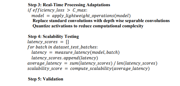 Hyperparameter optimization of the CNN architecture is critical in striking a balance between performance and computational efficiency so that the resultant system's scalability allows large-scale screening. Real-time processing is realized by incorporating lightweight layers into the network and efficient operations, such as depthwise separable convolutions and activation quantization. These have enabled the system to realize real-time detection with high suitability for point-of-care diagnostic applications at greater speed and accuracy. Table 1 shows the pseudocode for adaptive nano-architecture optimization.